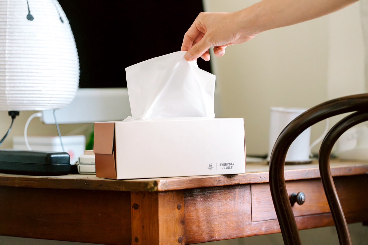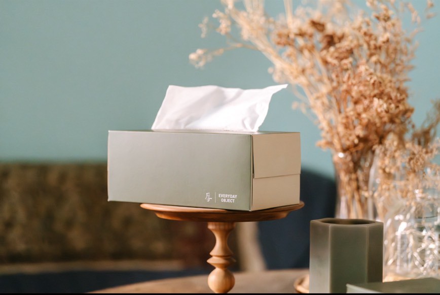 我們都曾有過這樣的經驗:精心佈置了客廳、書房,最後卻總得為了一盒包裝不搭的面紙,多套上一個面紙套。於是從幾年前,EO 就萌生了一個想法:「我們能否擁有一款『不需要使用面紙套』的面紙?」