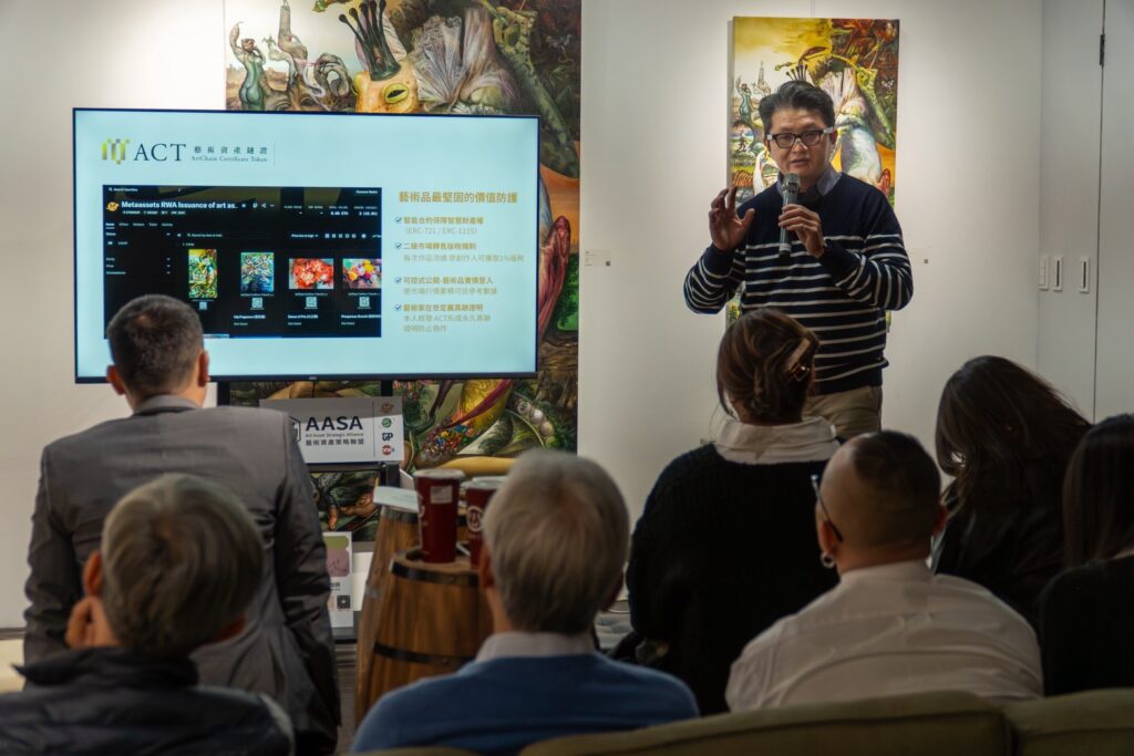 圖說:元宇宙資產執行長潘欣頌介紹ACT藝術資產鏈證。(照片提供/AASA)