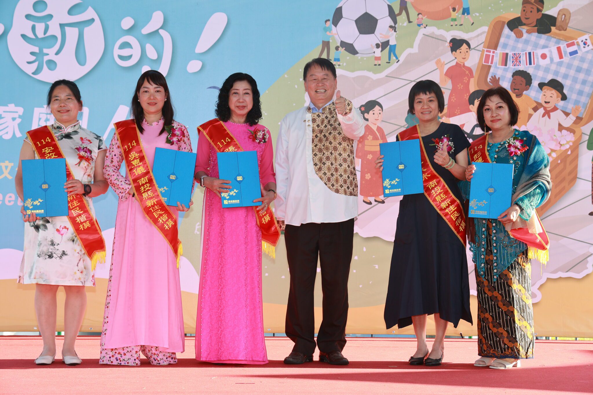 縣政府代理秘書長簡青松代表縣府表揚10位新住民楷模,肯定他們在職場、家庭與社區等領域的貢獻。立法委員游顥、麥玉珍到場共襄盛舉,並說明21日立法院三讀通過,中央將成立「新住民事務發展署」,未來將整合部會資源,全面加強新住民教育、就業權益照顧。兩位立委強調,這是新住民工作重大進展,對新住民與新二代來說,絕對是好消息。