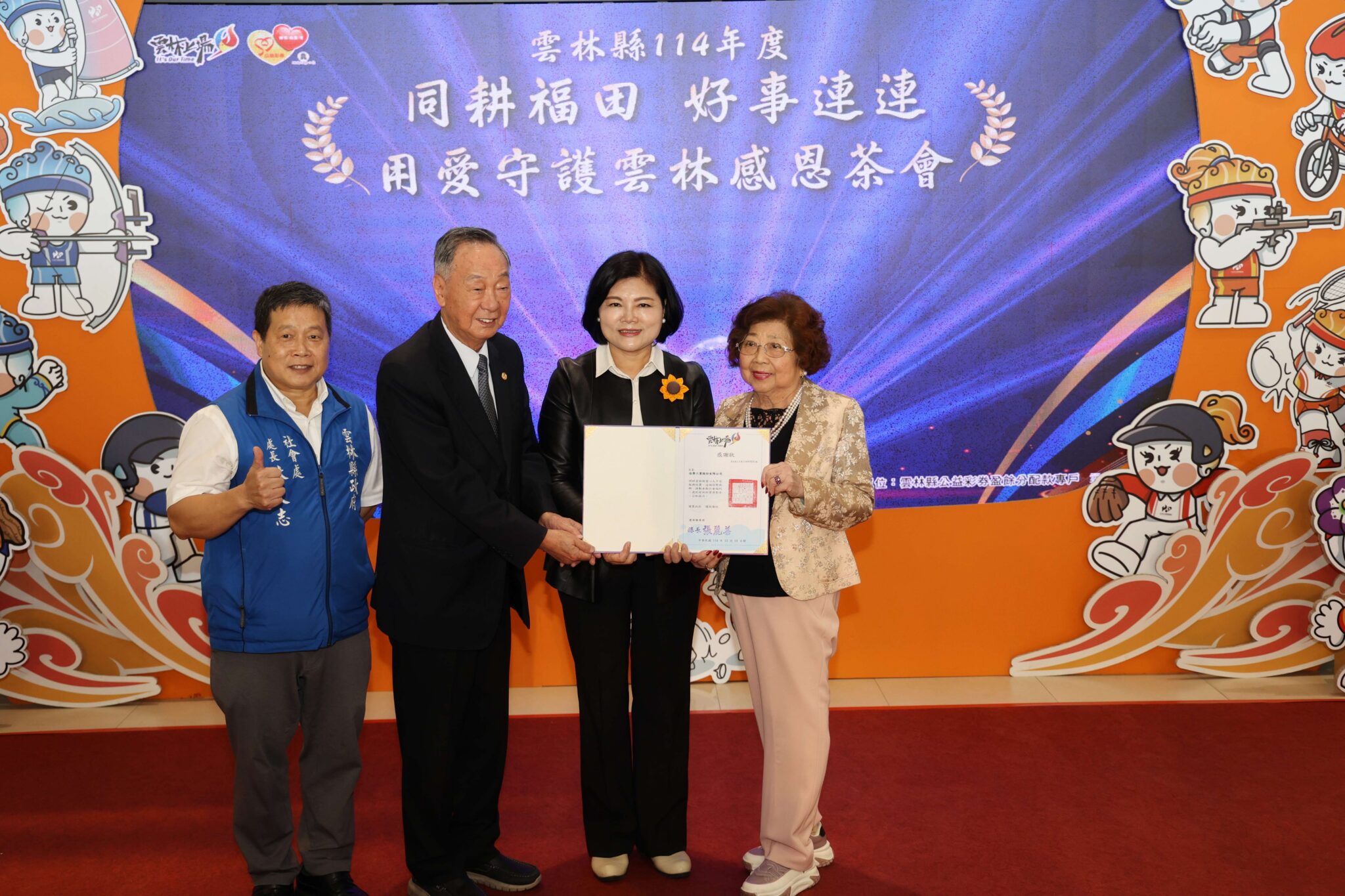 《同耕福田,好事連連》感恩茶會 張麗善縣長感謝各界用愛守護雲林雲林縣政府今(10)日舉辦《同耕福田,好事連連》用愛守護雲林感恩茶會,邀請各界團體代表與個人齊聚一堂,由張麗善縣長頒贈感謝狀,感謝大家長期投入社會關懷,共同見證縣府各項社會福利服務成果。