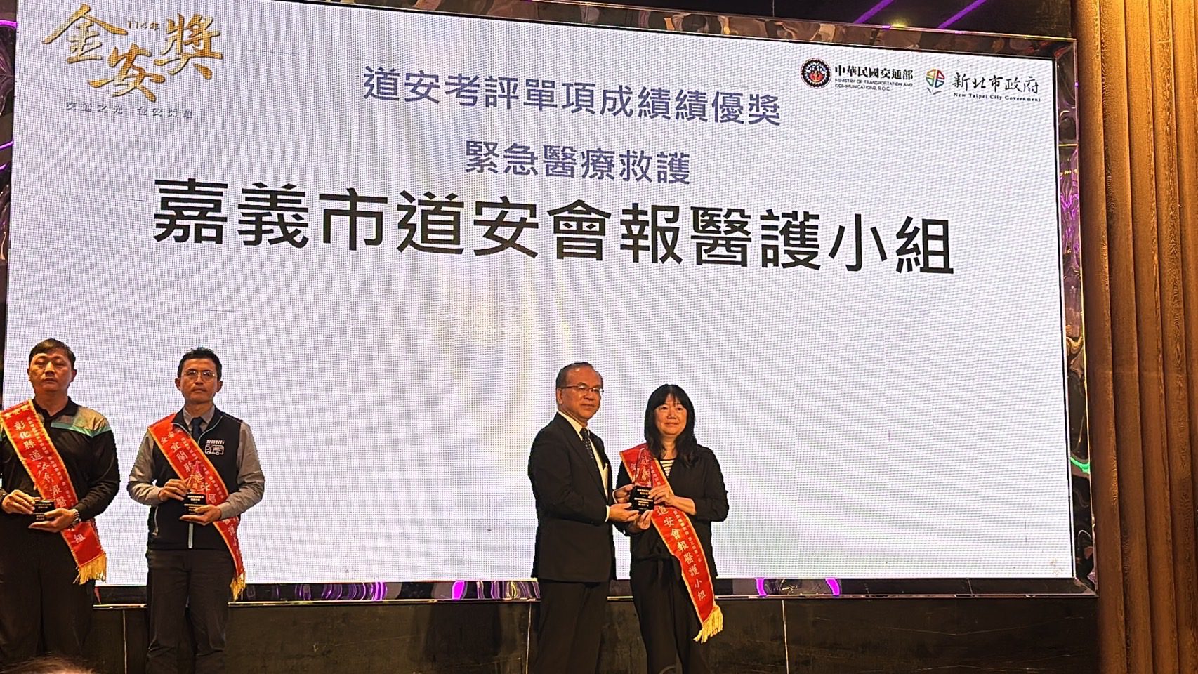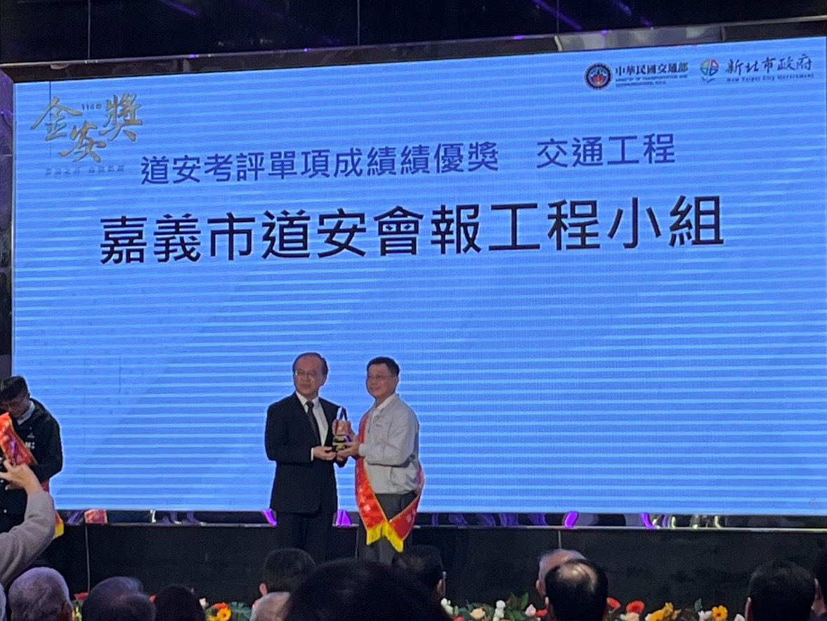 交通部114年考評「113年執行道路交通安全執行成果」結果出爐,並於114年11月21日假典華幸福機構頒獎表揚,嘉義市榮獲交通部「金安獎」7項單項評比中的4項單項成績獎,計交通工程組第三組第一名、交通執法組第三組第一名、緊急醫療救護第三組第一名及交通安全宣導組第三組第二名,道安評比表現獲肯定。