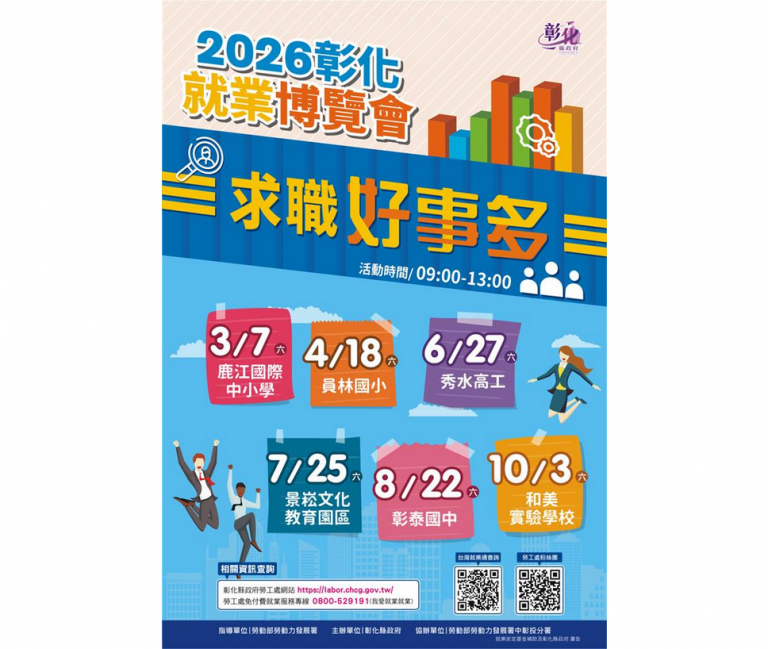 • 彰化縣政府2026「求職好事多」就業博覽會開跑 3/7鹿江國際中小學隆重登場