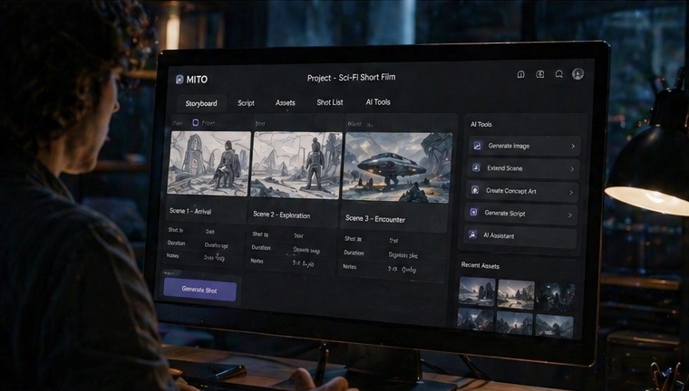 MITO AI結合故事板生成、素材整理、影音協作與多模型串接功能,讓影視團隊可在單一介面中完成前期規劃、內容生成與後期管理。