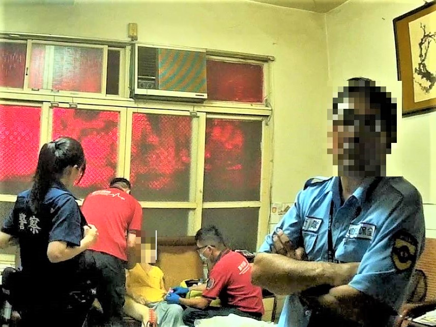 余女因在外縣市,無法直接趕回家,而警消無法直接從二樓鐵窗進入,一樓也因鐵門上鎖無法進入救護,最後經報案人電話同意後,協同消防人員破門進入救護,警消進入後,看到馮姓婦人癱坐在沙發上,雖然仍有意識,卻完全無法起身,似乎也發不出聲音。