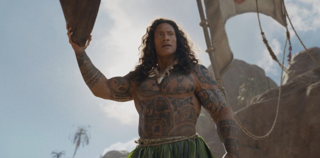 迪士尼影業暑期鉅作《海洋奇緣》真人版,將於7月8日(三)全台大銀幕乘風破浪!正式預告及海報今日曝光,影迷大呼是視覺與聽覺的雙重震撼!巨石強森首度以真人形象飾演的半神人「毛伊」,也在預告中露出廬山真面目! 《海洋奇緣》真人版電影正式預告,無疑為全球影迷帶來了視覺與聽覺的雙重震撼,完美還原了動畫中的經典色彩與波里尼西亞海島風情。故事的核心依舊圍繞著勇敢的莫娜展開。莫娜雖然貴為酋長之女,但她更是一名熱愛海洋、肩負拯救族人使命的戰士。 預告中展現了莫娜與家人深厚的情感,特別是她深受祖母的指引,祖母告訴她:「莫娜,大海選擇了你」,這句話也開啟了她橫跨大洋的壯麗冒險。最受矚目的角色莫過於由巨石強森親自飾演的半神人「毛伊」。強森完美詮釋了毛伊那種自傲卻又幽默的性格,預告中他大秀肌肉上的動態紋身,並展現其能隨心所欲變身成雄鷹的強大魔法。