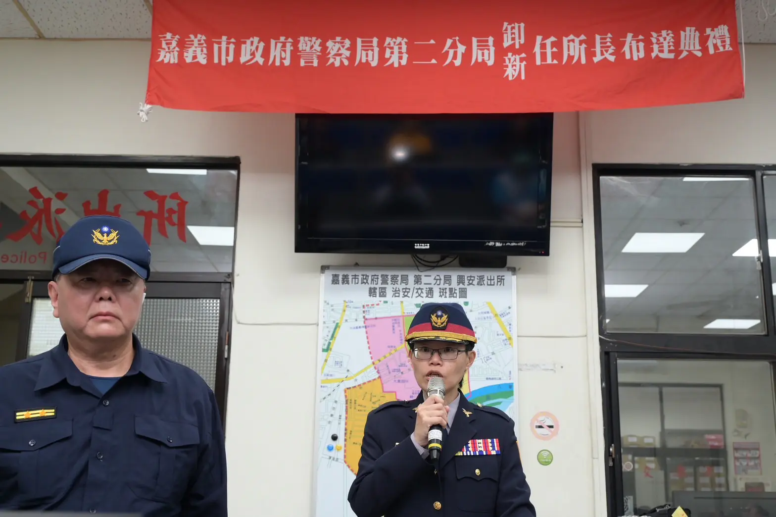 嘉義市政府警察局第二分局興安派出所卸、新任所長布達典禮3月3日10時假興安派出所舉行,警務員李治民接任所長職務,由分局長林思妙擔任主持,會中興安警友站、義警、民防、志工代表及頂寮、安寮、安業、興安、興村、興仁里里長等25餘人參加,典禮簡單隆重。