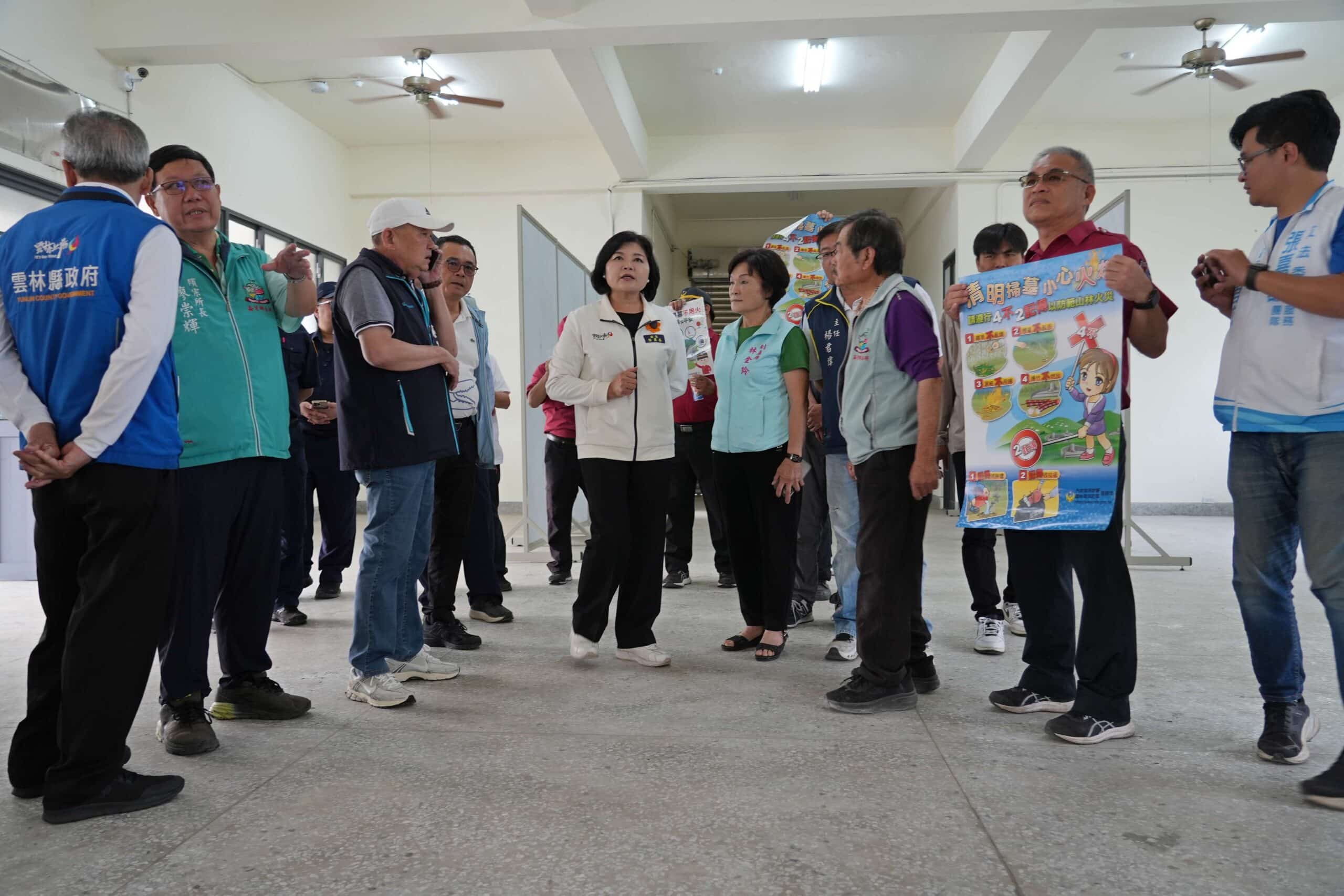 清明節將至,縣長張麗善3日前往土庫鎮、崙背鄉及口湖鄉多處公墓視察環境改善成果,指示相關單位做好整備工作,營造安全、有序的清明祭掃環境。她呼籲民眾落實減香減紙及注意用火安全,共同防範公墓火災發生。