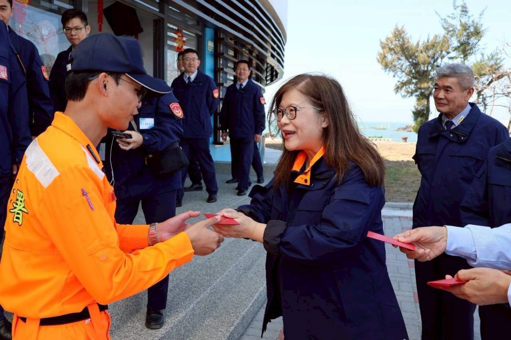管碧玲致詞指出,面對快速變動的國際情勢,政府正推動「海空一體、精銳海巡」計畫,持續強化裝備、系統與科技支援能力,提升整體海防韌性。她表示,適逢年節前夕,許多海巡人員仍堅守崗位,總統親赴基層慰勉,為同仁帶來實質鼓舞。