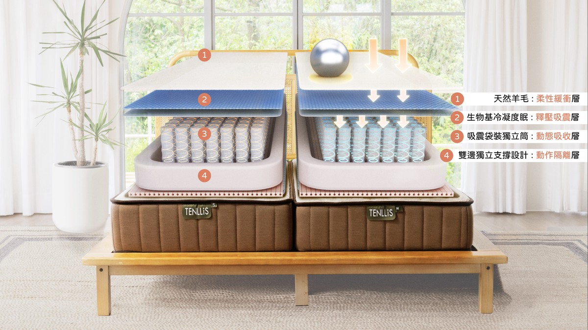 由專注床墊研發超過 40 年 的 Mr.BeD 倍得先生團隊 所推出的進化之作「植眠雙夢系統™」,在全球首創的「有機智能雙人床墊」募資專案中圓滿成功。該團隊在 2016 年曾推出台灣第一張可雙邊調整軟硬的「完美平衡床」。此次,植眠雙夢系統™ 傾聽了 5,000 對伴侶的深夜嘆息,並實測超過 5,000 筆問卷統計,發現多數伴侶在同床時,常因軟硬度不一致、晃動干擾、溫差不適、支撐不足等 六大核心問題,在夜復一夜的妥協裡磨損了相愛的力氣。植眠雙夢系統™ 從支撐層與舒適層的本質設計出發,藉由革命性的模組化、有機、智能設計,成功解決了這些真實的雙人共眠困擾,最終募資達成目標的 2,680%。
