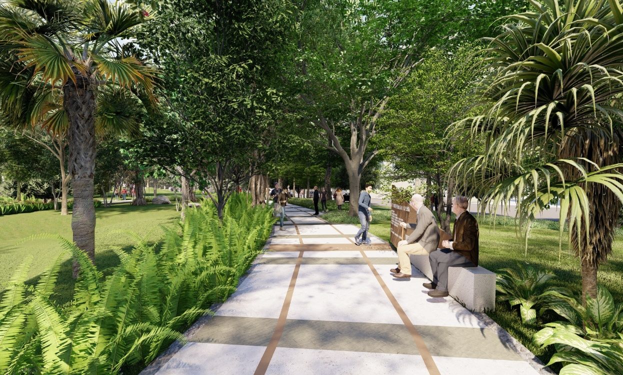 公園處向民眾說明設計構想內容,公園歷經四個不同時期建造、東西兩側截然不同風格,藉由本次整建改造重新整合元素,透過園路重新配置,並設計歷史「文化時光長廊」以改善阻隔感,同時將「現地綠資源梳理」、增設「雨水回收利用及流出抑制設施」及保留「綠意草皮」,落實城市降溫及海綿城市政策,此外,亦規劃拍攝總統府最佳景點「入口階梯廣場」,形塑府前拍照新亮點,獲得民眾熱烈回響。