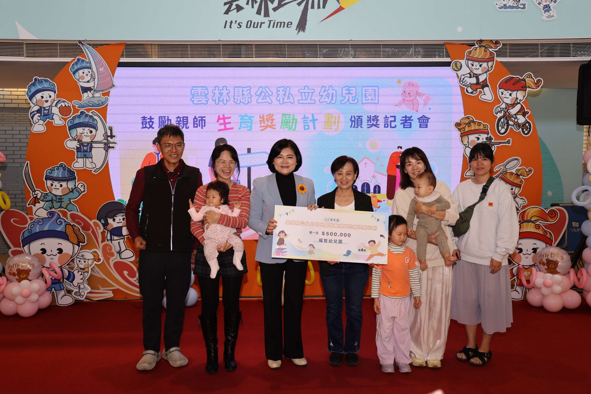 雲林縣公私立幼兒園鼓勵親師『生育獎勵』計畫,以園所為參加單位,凡就讀園內幼兒之母親或園所教職員於計畫期程內生產者,園所即可依新生兒人數及胎次累計分數,第3胎以上加倍計算;再以新生兒分數除以園所實際招收學童數,換算成新生兒百分率作為評比依據,獎金自10萬元至50萬元不等,鼓勵各園所共同營造友善生育氛圍。