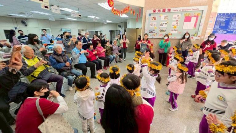 ▲新竹榮服處攜手清大附小幼兒園師生迎春向榮民(眷)長輩拜年。 (圖/記者蔣彤雲攝)