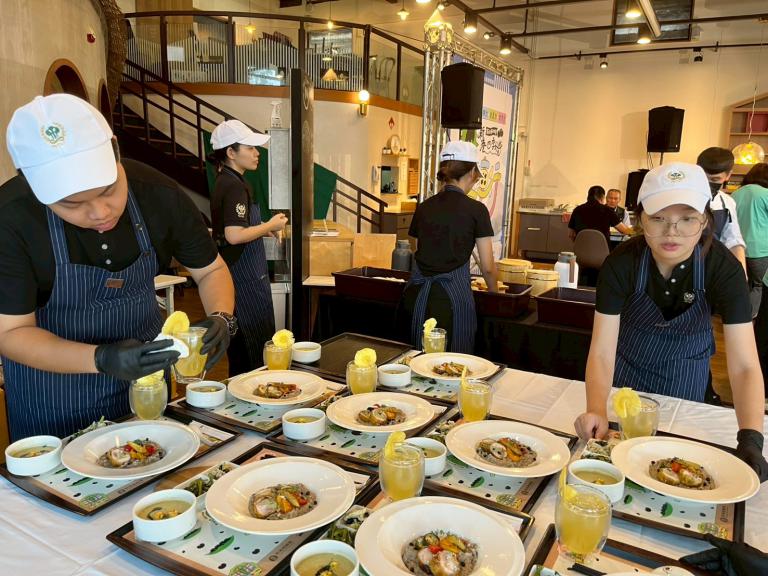 為深化本次四季豆陣遊程的食農內涵,國立高雄餐旅大學飲食文化暨餐飲創新研究所與食物設計研究中心共同研發療癒食農七感體驗特色餐,推出四款以新港玉米、鳳梨、空心菜與黑豆為主題的四季套餐,四款主題套餐,以「作物 × 風土 × 感官」為設計主軸,將日常農作化為可被品味、理解與感受的地方敘事。「黃金穗浪新港豐年饗宴」以玉米為起點,呈現豐收季節的金黃色調與家常溫度;「旺來嘉福?新港果香桌」以鳳梨特有的酸甜香氣串連南國果香風景,打造清爽而具節慶感的味覺體驗;「綠畦新港?空心菜的土地記憶」藉由空心菜與黑豆的層次風味,重現新港農田的清香與土地記憶;而「黑豆風土新港豆香誌」則從新港深厚的豆類文化延伸,將黑豆的烘焙香與多重轉化化作完整的風土味譜,講述一顆豆的生命旅程。