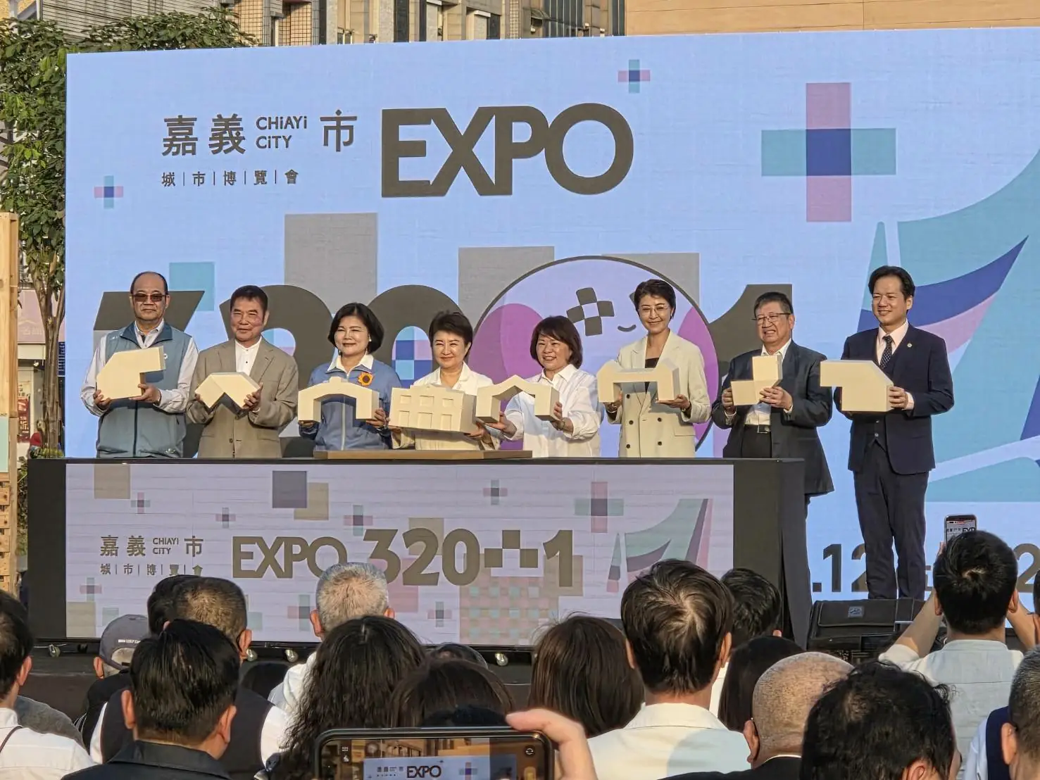 (記者 邱嘉琪 嘉義報導)嘉義市建城「320+1嘉義市城市博覽會」12日在市府北棟大樓預定地廣場盛大登場,全市17處展區同步啟動,正式揭開為期三週的城市盛典。嘉義市長黃敏惠與中臺灣區域治理平台8縣市首長出席,以8座經典木造建築模型進行啟動儀式,象徵嘉義「木都」的城市故事再添新頁。