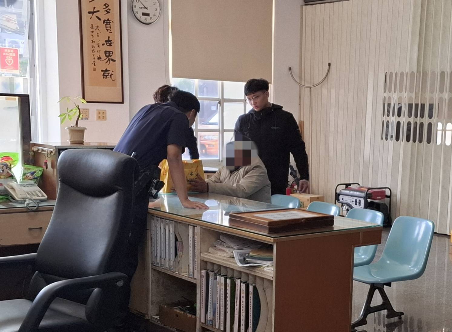 【記者 彭可可/綜合報導】東港警分局東濱派出所警員劉芳雯、程崇育日前執勤時,發現派出所外一名老翁跌倒坐在延平路上,員警立即帶至所內休息,初步檢視所幸無受傷,經查詢身分後協助護送返家,家屬很感謝警方的幫忙。