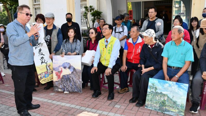 12日到場力挺的藝術家,在彰化縣美術學會理事長林鴻銘、彰化縣藝術家學會理事長陳楣豔、彰化縣逸晉書道學會理事長蔡銘峰以及建築師畫家羅榮源等人的帶動下,除了致贈具彰化意象的字畫、書帖外,更與林世賢市長共同揮毫,氣氛熱烈,將活動推向最高潮。