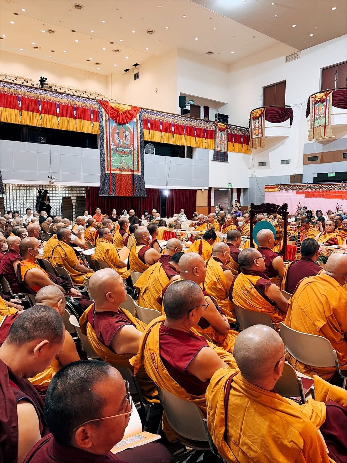 墨新聞|記者游宏琦/高雄報導 第43任薩迦法王雲端開示:《普賢行願品》統攝三日修持 25、26日,請把握參與 結行日將發藥師佛壇城聖沙與大眾結緣。 【記者 游宏琦/台北綜合報導】 43任法王,在印度與台灣做雲端連線開示;並且感性的表示,「台灣弟子他一直放在心中無一刻是分離的。」/ 圖 文殊佛學會 提供 第二屆台灣薩迦世界和平祈願大法會今(24)日於台北劍潭活動中心・群英堂啟建。 第43任薩迦法王‧智慧金剛仁波切透過視訊連線開示與加持,特別開示《普賢行願品》在祈願法會中的核心地位—以十大行願連貫「發願」—「行持」—「迴向」的修學次第及大乘慈悲心的悲願,將群體善根匯流為願力,迴向世界和平、台灣安樂。法王並致意表示,**「一直把台灣弟子放在心中,與台灣弟子同在。」**現場由、大會主席普拉仁波切、薩迦察巴-達波曉宗仁波切(副主席)及在台諸位仁波切、堪布領眾恭誦《普賢行願品》,梵音莊嚴,法喜充滿。 法王開示要旨(摘要) 《普賢行願品》出自《大方廣佛華嚴經》,為普賢菩薩對善財童子宣說之十大全願:禮敬諸佛、稱讚如來、廣修供養、懺悔業障、隨喜功德、請轉法輪、請佛住世、常隨佛學、恆順眾生、普皆回向。此品於藏譯《華嚴經》置於〈樹嚴品〉,為佛陀「加持教法」之攝;傳承自善財童子而下,歷龍樹、聖天、妙譽諸大論師,復由大譯師與薩迦初祖薩欽貢噶寧波等相續不斷。行者受持讀誦與觀修,能速集福智二資糧、淨化罪障、臨終往生淨土。 大會主席-普拉仁波切,上台致詞,感謝所有參與祈願法會的150位僧眾及所有與會大眾,感恩大家共同的發心。/ 游宏琦 攝 本屆調整與後續重點 本屆不設灌頂;三日修持以**《普賢行願品》全力誦持;及藥師七佛、藥師八如來之「祈福」與「超薦」法會**為主。 25、26日尚有兩天祈願與共修,敬請大眾把握難得因緣,同心發願、共修回向。 26日(末日)將發放「壇城彩色聖沙」與眾結緣,承接法會總加持,殊勝難得。 殊勝難得一見的,壇城沙畫曼陀羅,第三天結束時將會與大眾分享殊勝壇城沙/ 圖 Ray 攝影 《會場花絮》(首日)~猶如一片花海 供花、供燈與幡幢環繞壇場,彩沙壇城莊嚴肅穆;四眾弟子次第禮敬,聽聞法王雲端開示,人人心懷感念。眾人並將首日功德迴向:世界止息干戈、台灣平安、眾生離苦得樂、福慧增長。 信眾的供花擺滿整個法會現場~象徵開花結果圓滿菩提/ 攝 游宏琦 官方資訊 願以三日共修之功德,回向世界和平、國泰民安、人民安樂。 此篇文章最開始出處為: 第二屆台灣薩迦世界和平祈願大法會|首日快訊-43任法王雲端開示