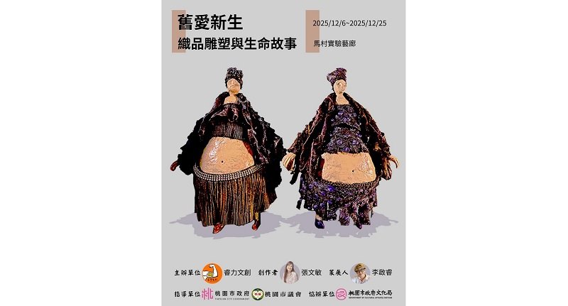 波新聞─陶泰山/桃園張文敏個展《舊愛新生:織品雕塑與生命故事》將於 2025年12月6日至12月25日在馬村實驗藝廊展出。「織品雕塑」以舊物、舊衣與舊配件為主要媒材,透過織品的再製、重組與解構,賦予物品新的生命與意義。展出的每件作品都承載著創作者張文敏的生命記憶與未來想望。本展共展出三十餘件一年半內的新作,另特別展出數件張文敏指導學生的作品,呈現多層次的創作能量。策展人李啟睿將本展定位為「延續記憶與情感的再創造」,透過重組舊衣與配件,讓被遺忘的物件獲得第二次生命,融合了永續概念、心靈療癒、生命意義與自我表達。展覽地點「馬村實驗藝廊」前身是馬祖新村舊眷舍,老屋再利用的特質正與展覽主題相互呼應。當觀者走進空間,將同時感受到藝術、生活痕跡與心靈療癒的共鳴。身兼創作者與聲音演員的張文敏,也特別為每件作品錄製導覽語音。觀眾可掃描展場QRcode,邊看作品、邊聆聽她的聲音故事,在視覺與聽覺之間獲得雙重沉浸體驗。此外,每週末藝術家將親自導覽,並於展期間舉辦至少一場「織品雕塑工作坊」,邀請民眾親身體驗創作的過程與感動。詳細導覽時間、工作坊報名資訊與開幕活動,請關注主辦單位 「睿力文創」 臉書粉絲專頁。活動地點:馬村實驗藝廊(桃園市中壢區龍吉二街155號「馬祖新村眷村文創園區」1至3號眷舍)活動時間:「舊愛新生:織品雕塑與生命故事」於馬祖新村眷村文創園區1至3號眷舍。展出日期|2025年12月6日至12月25日開放時間|9:00-18:00 (周一休館)茶會時間|2025年12月11日 早上10:30