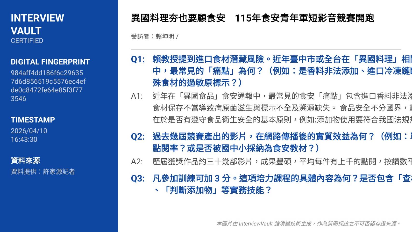新聞來源:(採訪紀錄如下圖)