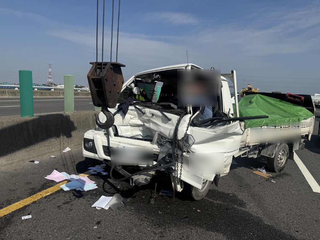 國道3號小貨車追撞自小客車駕駛一度受困,消防隊員到場救援。翻攝畫面