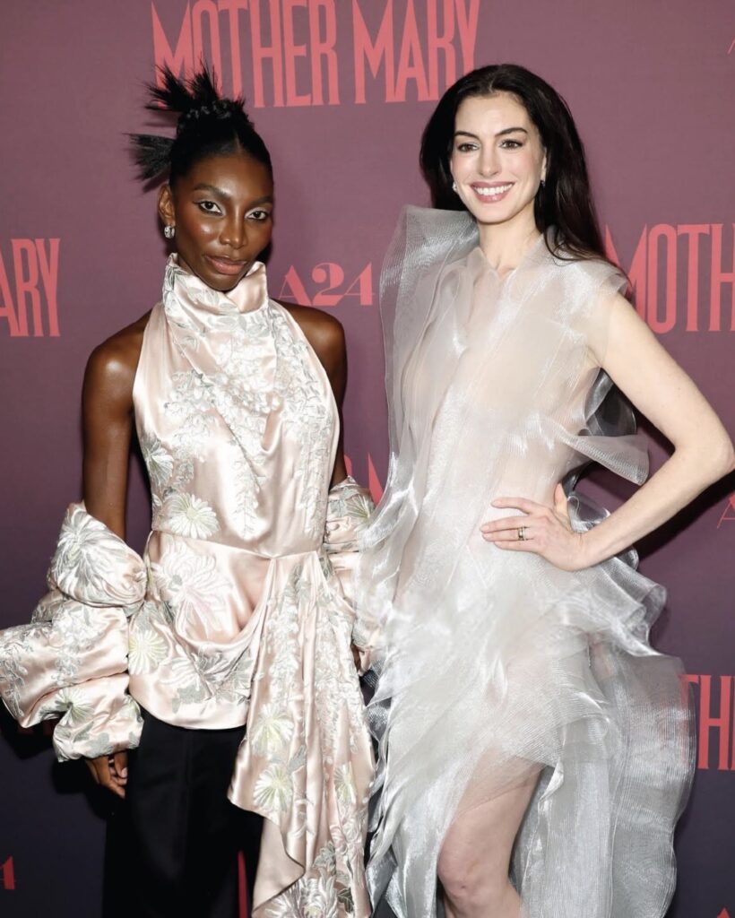 由鬼才名導大衛羅利(David Lowery)編導,攜手「金獎製造機」A24打造的話題強片《魅影巨星》(Mother Mary),即將在本週五(4/17)於台灣與美國同步獻映。本片於昨日(4/14)在紐約舉辦盛大首映,導演大衛羅利率領安海瑟薇(Anne Hathaway)、麥凱拉柯爾(Michaela Coel)、小枝女孩(FKA Twigs)等演員共同出席。安海瑟薇以不對稱透膚禮服仙氣登場,麥凱拉柯爾則以粉色花紋上衣搭配黑色褲裝俐落現身,讓活動現場簡直就像時尚盛會。兩人分享對流行巨星與電影的看法,更在映後派對展現好交情熱舞。尤其安海瑟薇不僅在片中再開金嗓,更載歌載舞詮釋流行巨星「聖母瑪莉」。為此,她秉持初學者心態進行將近兩年訓練,兩項巨大挑戰讓她直呼:「很無助!」更一度瀕臨崩潰。當她開始拍攝主要劇情時,歌曲都尚未創作完成,她必須在不了解音樂風格的前提下演出,但依靠本能的形式,反而讓她感到感激,而用盡全力的表演,也幫助譜寫原創音樂的傑克安多夫(Jack Antonoff)與酷娃恰莉(Charli XCX)找到創作方向。