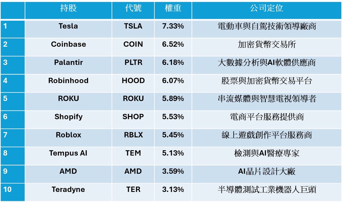 看完這些大趨勢,投資人若也想抓住金融科技的下一波成長契機,市場上已有更方便的布局方式,就是透過美股ETF買進一籃子創新金融科技股。其中,由中國信託投信餘今年推出的首檔海外股票型主動事ETF「主動中信ARK創新(00983A)」,由知名基金經理人「木頭姐」Cathie Wood旗下《方舟投資》(ARK Invest)擔任海外顧問,嚴選包括Robinhood、Shopify、Coinbase、Circle、SoFi、Block、Mercado Libre、BitMine等具破壞式創新潛力的金融科技龍頭,橫跨線上券商、數位資產交易、區塊鏈技術與新型電商平台等多元領域,協助投資人一次卡位多重金融創新趨勢,掌握長線成長紅利。