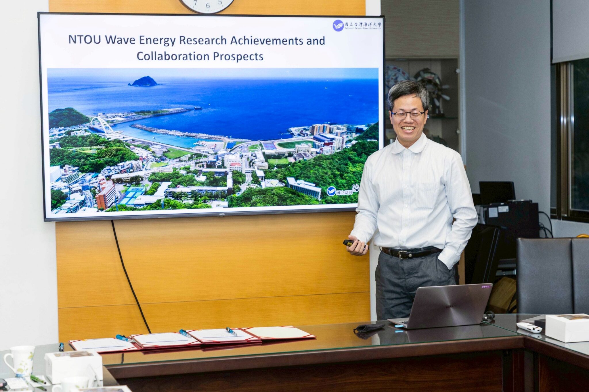 國立臺灣海洋大學與澳大利亞海潮能源公司(Wave Swell Energy, WSE)於11月18日正式簽署合作備忘錄(MOU),雙方將共同研議波浪能轉換系統(Wave Energy Converter, WEC)於臺灣海洋環境中的技術可行性與合作模式。此合作不僅象徵海大在波浪能國際合作上的重要里程,也代表臺灣在再生能源多元化與海洋能商轉佈局持續邁進。