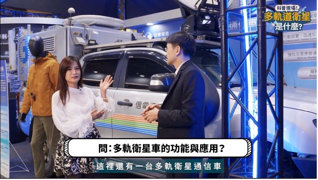 針對在特殊地區或特殊狀況下的通訊需求,如偏遠山區收不到訊號或災難發生時所有基地台都斷訊時也有備案,中華電信的多軌道衛星通訊車正是為此目的而設計,能夠同時支援高、中、低三種軌道的衛星通訊。車輛配備了碟型天線用於接收高軌道衛星,以及車頂上的平板天線用於接收低軌道衛星,這輛通訊車除了肩負衛星通訊的任務外,同時還配置了支援4G/5G網路用的基地台,提供多層次的網路備援。透過這些技術的積極投入與建設,中華電信建構了完善的通訊網路,以行動實踐了「永遠走在最前面」的企業核心價值。