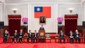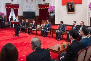 訪賓一行由中華民國診所協會全國聯合會理事長廖文鎮率領,衛生福利部部長石崇良陪同,前來總統府晉見總統,總統府秘書長潘孟安也在座。