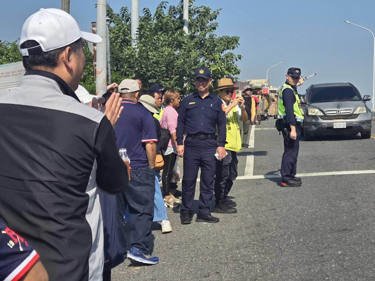 本次遶境活動現場警察局路老師李晟邦警官也以婦幼、交通、防疫安全、反貪腐廉政倫理案例及「1959」動保專線,加強宣導動保及環保案件策略具體作法與現場信眾熱烈互動,宣導效果良好。